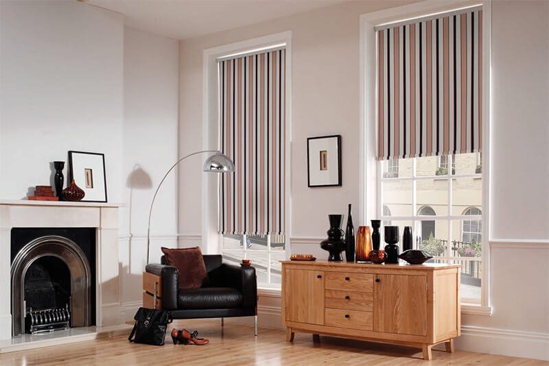 Для кімнати з низькими стелями підійдуть тканинні штори з вертикальною смужкою, які візуально витягнуть простір.