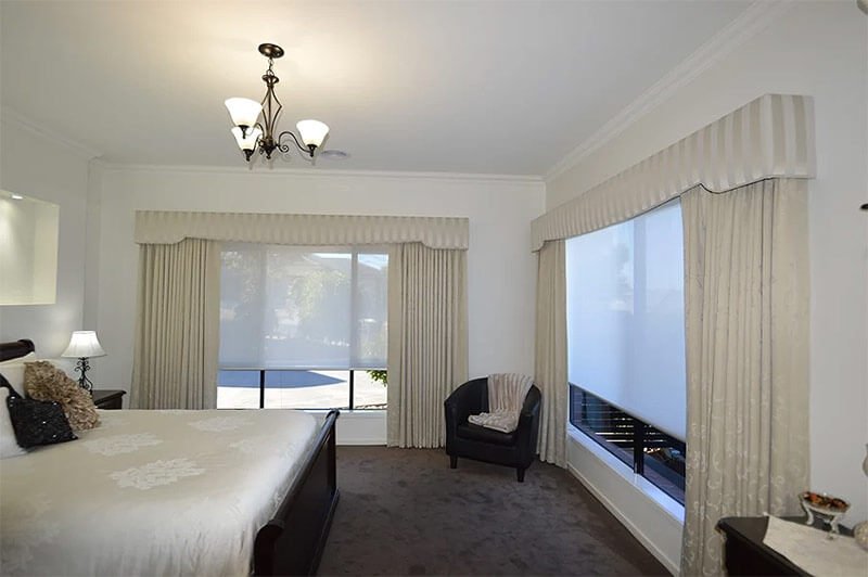 У західні вікна спекотні сонячні промені проникають після полудня, і сильно припікають. Зменшити цей ефект можна за допомогою рулонних штор нейтрального кольору (ближче до холодної гамі). Особливо варто приділити увагу щільності і фактур виробів. Наприклад, підібрати тканину з набивним малюнком або натуральною текстурою.
